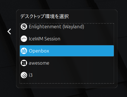 - リストから「Openbox」を選択してログインします。