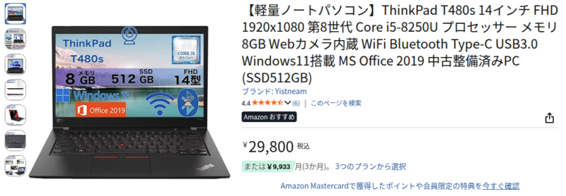 下記でオススメしているThinkPadは、すべて高速なSSDを搭載しており、「即応性」が優れています。