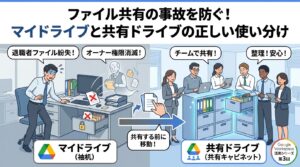 社内メンバーは会社のWorkspaceアカウント、外部パートナーは個人のGmailアカウントで同じファイルにアクセスできる——この柔軟さが、ネットワーク型組織には特に便利なのです。