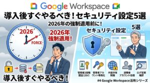 これらを自社サーバーで実現しようとすると、専門知識と追加費用が必要になります。Google Workspaceでは最初からこの水準が標準装備されているのです。