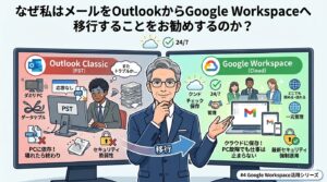 この記事は、古いメールシステムの限界を感じ始めた分散型組織の経営者・IT担当者に向けて書いています。Google Workspaceを使ったメール一元化の具体的なイメージと、情報共有を整える現実的な第一歩をお伝えします。