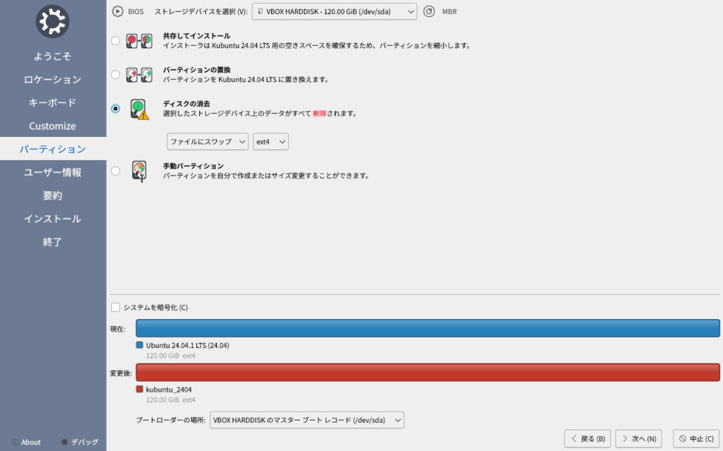 VirtualBoxの仮想PC上にKubuntuをインストール