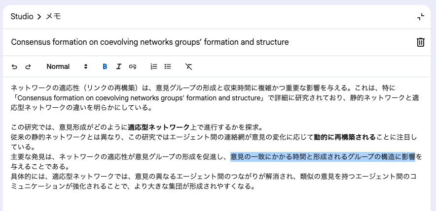 - 自由な編集: 保存したノートは、後から自由に編集したり、並べ替えたりして、自分だけの知識ベースを構築できます。