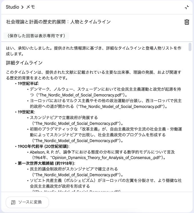 ソースをアップロードすると、AIが自動的にいくつかの便利なビューを生成してくれます。
