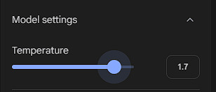 - 「Model settings」の「Temperature」では普通の1に(最大の2は感情を豊かに、0は感情を抑えます)にし、「Voice」は男性の声にしてみました。
