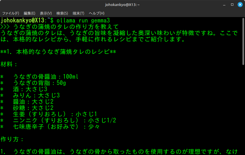以上、ターミナル(端末)内でAIを利用できるわけですが、ChatGPTやGeminiと同じ感覚で利用する方法もあります。