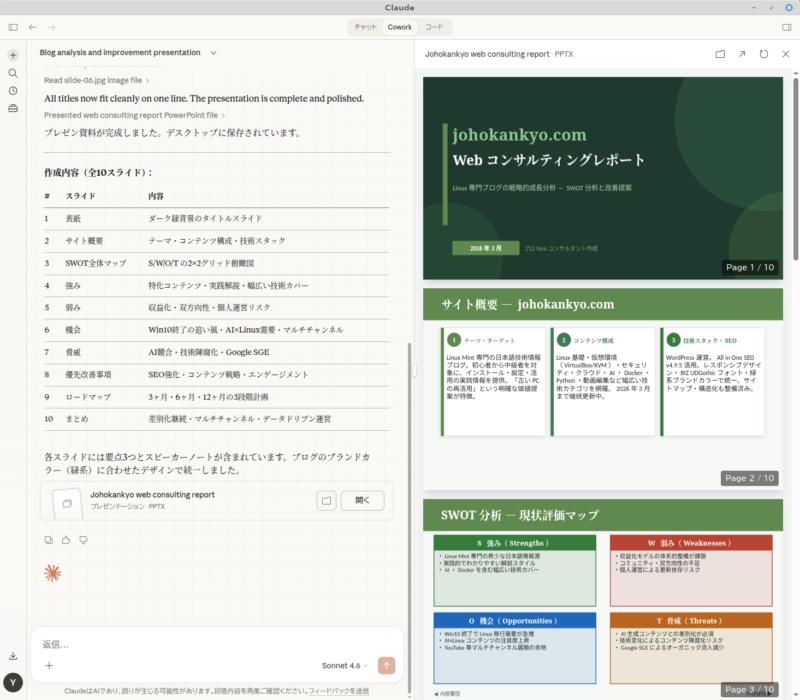 AIがPCを操作して仕事を代行するClaude Cowork。Linux MintでClaude Desktop版を使う